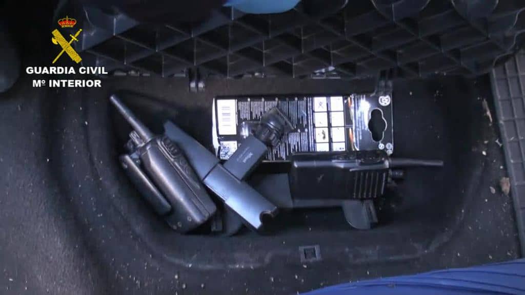 Se les intervino más de 1.250 cajetillas de tabaco, además de ropas de color oscuro, guantes, pasamontañas…; así como una radial utilizada para abrir cajas fuertes y diversa herramienta con la que practicaban los butrones como mazas, hachas, patas de cabra… También se les intervino emisoras tipo walkie-talkie, las cuales eran usadas para las comunicaciones entre los integrantes del grupo que estaban dentro de los comercios y los que vigilaban el exterior, evitando así el uso de teléfonos, como una clara medida de seguridad.