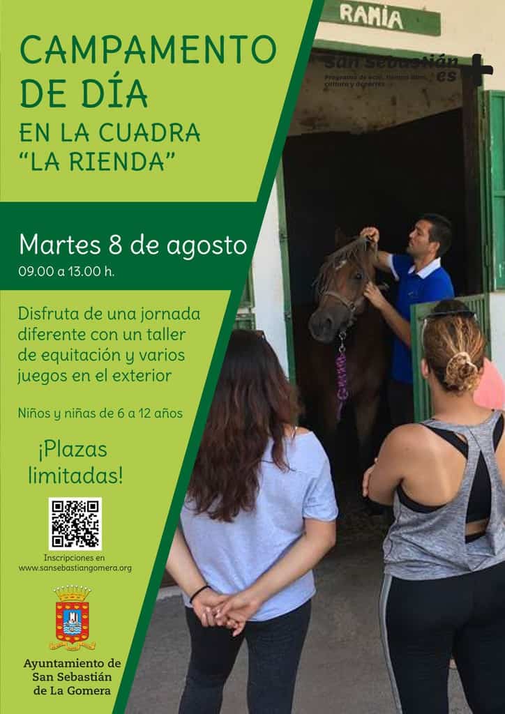 El martes 8 de agosto, en horario de mañana, se celebrará un campamento de día en la Cuadra “La Rienda”. Una jornada que incluirá un taller de equitación y numerosos juegos que harán las delicias de los jóvenes. En este sentido, se recomiendan que traigan bañador para disfrutar con las actividades acuáticas previstas.