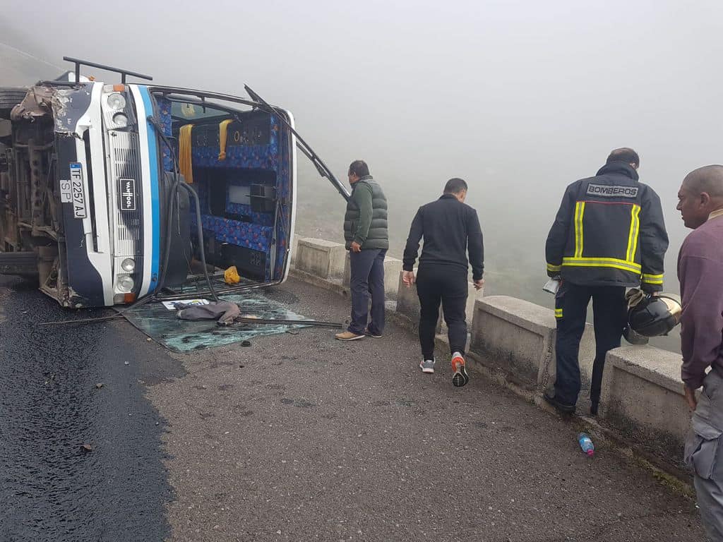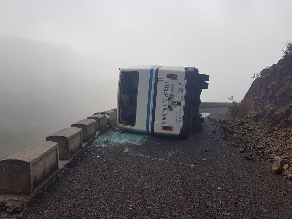 Una guagua con aproximadamente unos 20 turistas, ha volcado lateralmente en el CV-13 en las proximidades del caserío de Arguayoda en el término municipal de Alajeró.