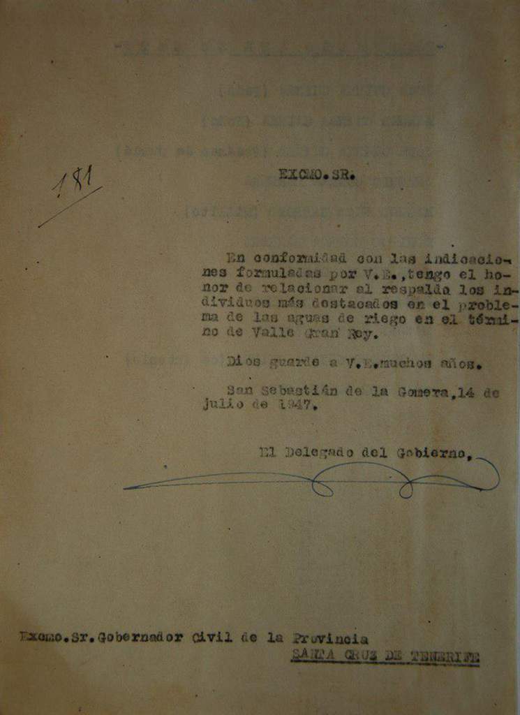 El Ayuntamiento de Valle Gran Rey solicitará a la Consejería de Turismo, Cultura y Deportes del Gobierno de Canarias como administración del Archivo Provincial de Santa Cruz de Tenerife, la digitalización de los documentos existentes en torno a la Guerra del Agua y la donación de estas copias digitales para el archivo de Valle Gran Rey.