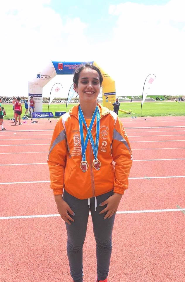 Nuestros atletas dieron lo mejor de sí, como es usual cada vez que salen desde la Gomera a la competición. La muestra patente ha sido la cadete, LUCIA CURBELO BARROSO, que viene demostrado otro año más, sus ganas de superación en sus especialidades que siguen creciendo. Logro realizar, en la primera jornada de tarde-noche, en triple salto su mejor marca personal (MMP) con 11,29 m., que al ser mínima nacional (11,05), le dará acceso a participar en los Campeonatos de España SUB-16 (cadete) en Valencia, los días 30 Junio y 1 de Julio. Además, en la siguiente jornada matutina, en jabalina, logro la mejor marca de cadetes de Canarias y (MMP) con un lanzamiento de 34,88. Marca que también le puede permitir estar en dicho campeonato pues la mínima es de 35 m. Participando también en salto de altura que la dejo 5ª con 1,43 m.
