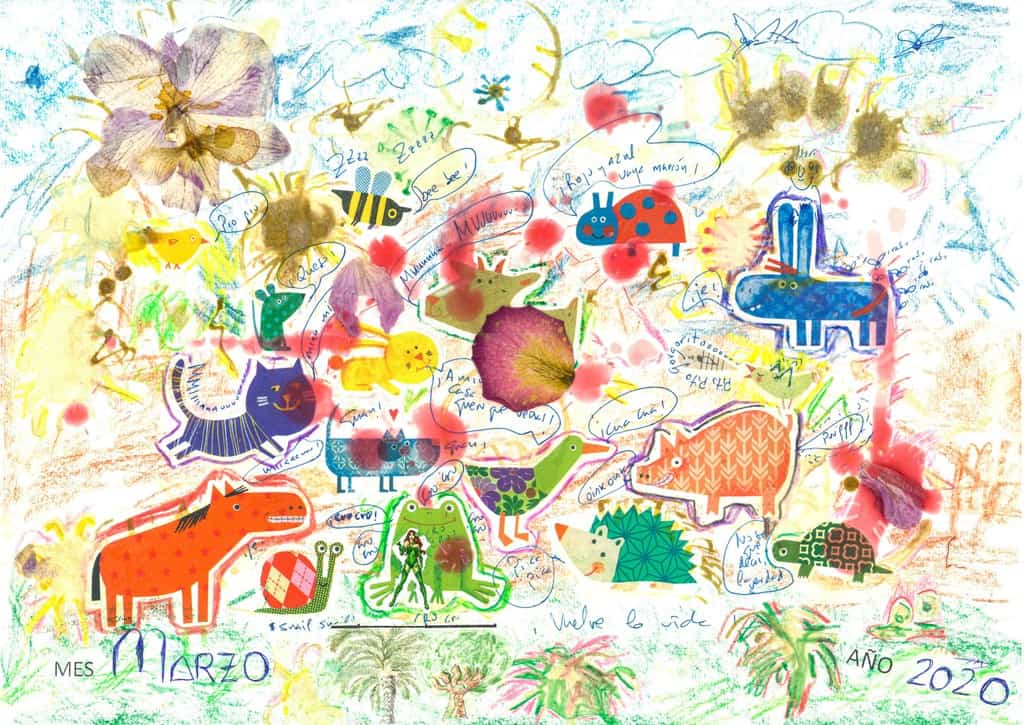 En esta edición y en el confinamiento, dibujaba y corregía las manchas que se producían en el panel de cartón sobre su mesa y surgieron cosas muy bonitas y muy sugerentes y se atreve a mostrarlas y se le nota que le gusta descubrir que ella también es capaz de elaborar pequeñas bellezas.