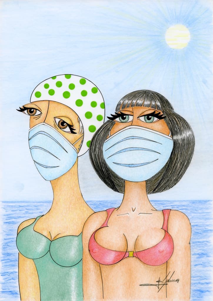 Y aparecieron las mascarillas en lo que pintaba o dibujaba, en las mujeres en la playa o paseando, casi vinieron solas como influencia clara de lo que estábamos viviendo o de lo que estaba sintiendo”.