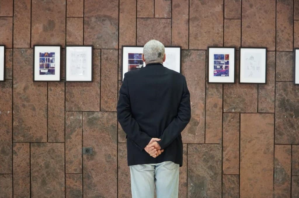 Un visitante en la exposición de Mararía