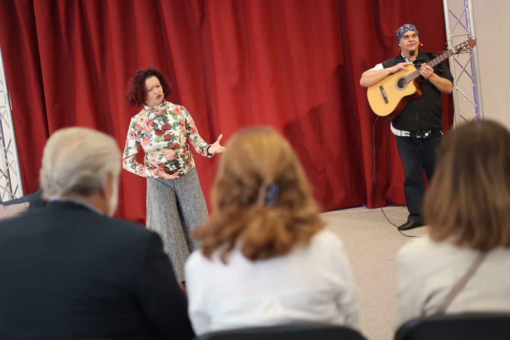 Durante esta jornada, la Sala de Exposiciones de la Cámara canaria se llenó de niños y niñas que pudieron disfrutar de las actuaciones y cuentacuentos de las artistas Miriam Reyes y Miriam Bienes, que fueron las encargadas de contar y cantar a los pequeños que se encontraban en el Parlamento, entre ellos, lo alumnos del CEIP La Rosa de Santa Cruz de Tenerife. Seguidamente se desarrolló la sesión para los adultos con la actuación del Teatro Eclipse, una compañía con 25 años de experiencia. La directora, Marianexy Yanes, estuvo acompañada durante su actuación del músico Levis Aliaga.