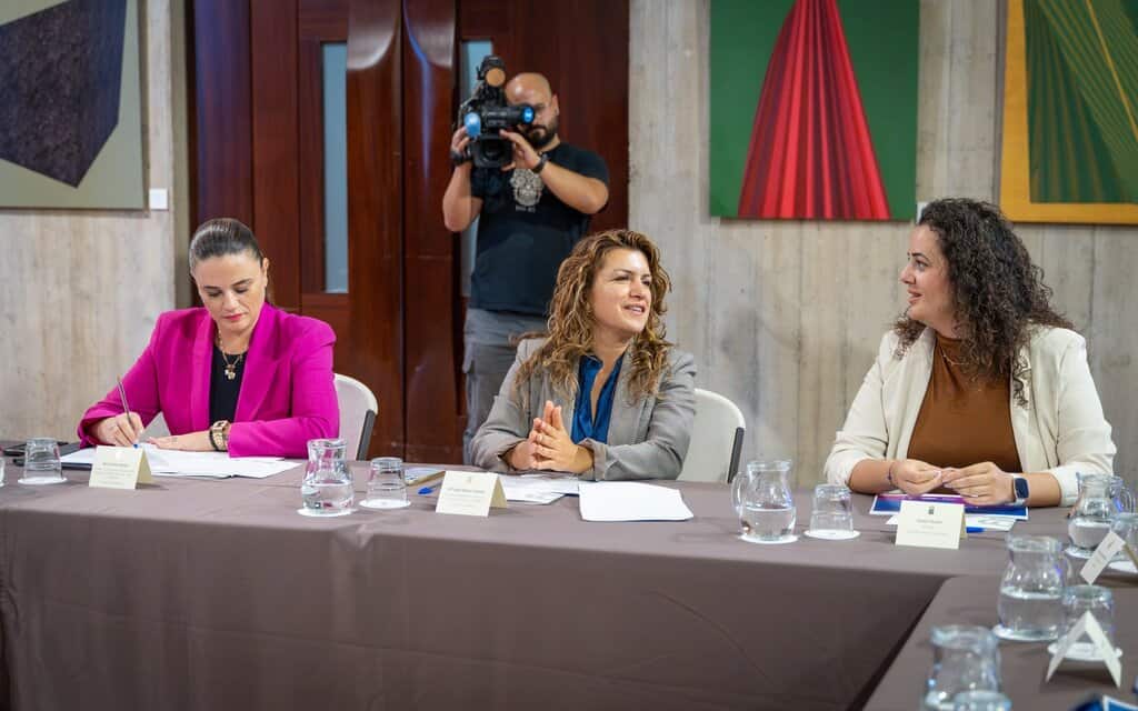En el centro, María Isabel Méndez, consejera de Comercio y Consumo del Cabildo de La Gomera, y a la dcha. Jennifer Morales, delegada de la Cámara de Comercio de S.C. de Tfe. en la isla