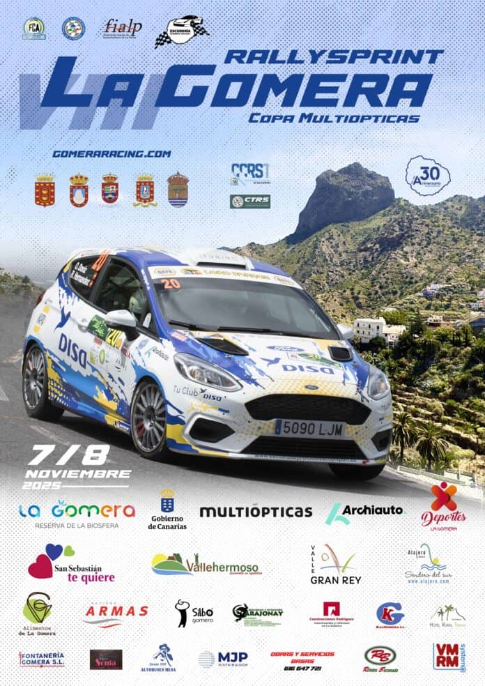 El próximo mes de noviembre se celebrará la octava edición del Rallysprint La Gomera, cita que por tercer año consecutivo llevará el apellido de Multiópticas. Plenamente asentado en el calendario regional, provincial e interinsular de la especialidad, la prueba que organiza la Escudería Gomera Racing se celebrará los días 7 y 8 de noviembre. Será la segunda de la temporada a cargo del equipo que dirige Juan Luis Alonso, organización que cumple este año 30 años de vida.