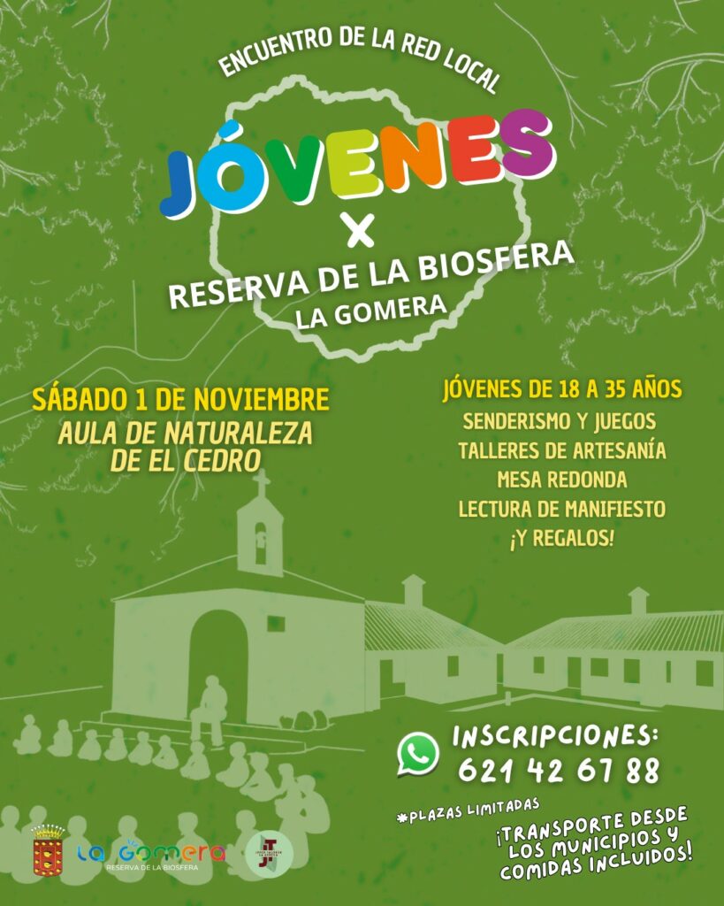 La Reserva de la Biosfera de La Gomera celebrará, el sábado 1 de noviembre, el primer Encuentro de la Red Local de Jóvenes, una jornada de convivencia, aprendizaje y participación organizada por el Cabildo de La Gomera y la Asociación Joven Tagoror.