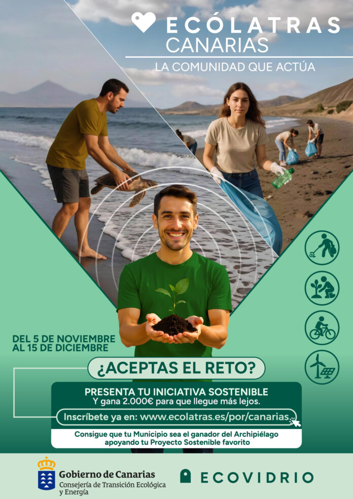 Además un municipio del Archipiélago Canario participante, recibirá una dotación de 1.000€ para el desarrollo de una acción Sostenible en el municipio, en base a los siguientes parámetros: aumento de reciclaje de envases de vidrio en el municipio, número de iniciativas inscritas en la campaña, número de personas registradas como nuevos Ecólatras y difusión de la campaña en su municipio (las bases de participación podrán consultarse en la web de la campaña www.ecolatras.es/por/canarias).