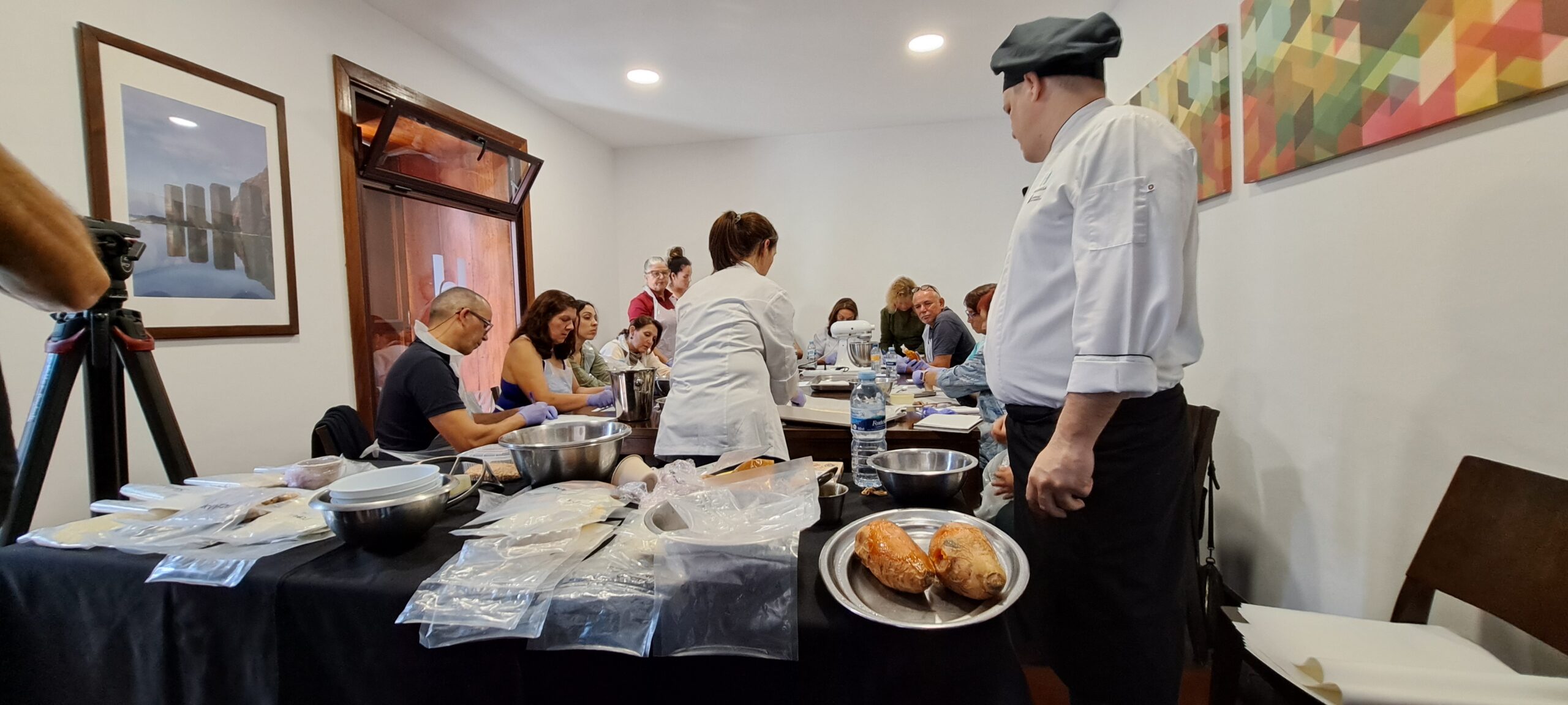 El jefe de Cocina del Hotel Escuela Santa Cruz, Carlos Bruno, dedicó las casi seis horas del curso a detallar los ingredientes de cada una de estas recetas de la repostería canaria a más de diez personas que participaron en este taller formativo organizado por Hecansa. A su lado, Betsy Alfonso del Pino, pastelera del Hotel Escuela Santa Cruz, desveló a los participantes trucos y métodos de elaboración de estos productos típicos de estas fechas en las islas.