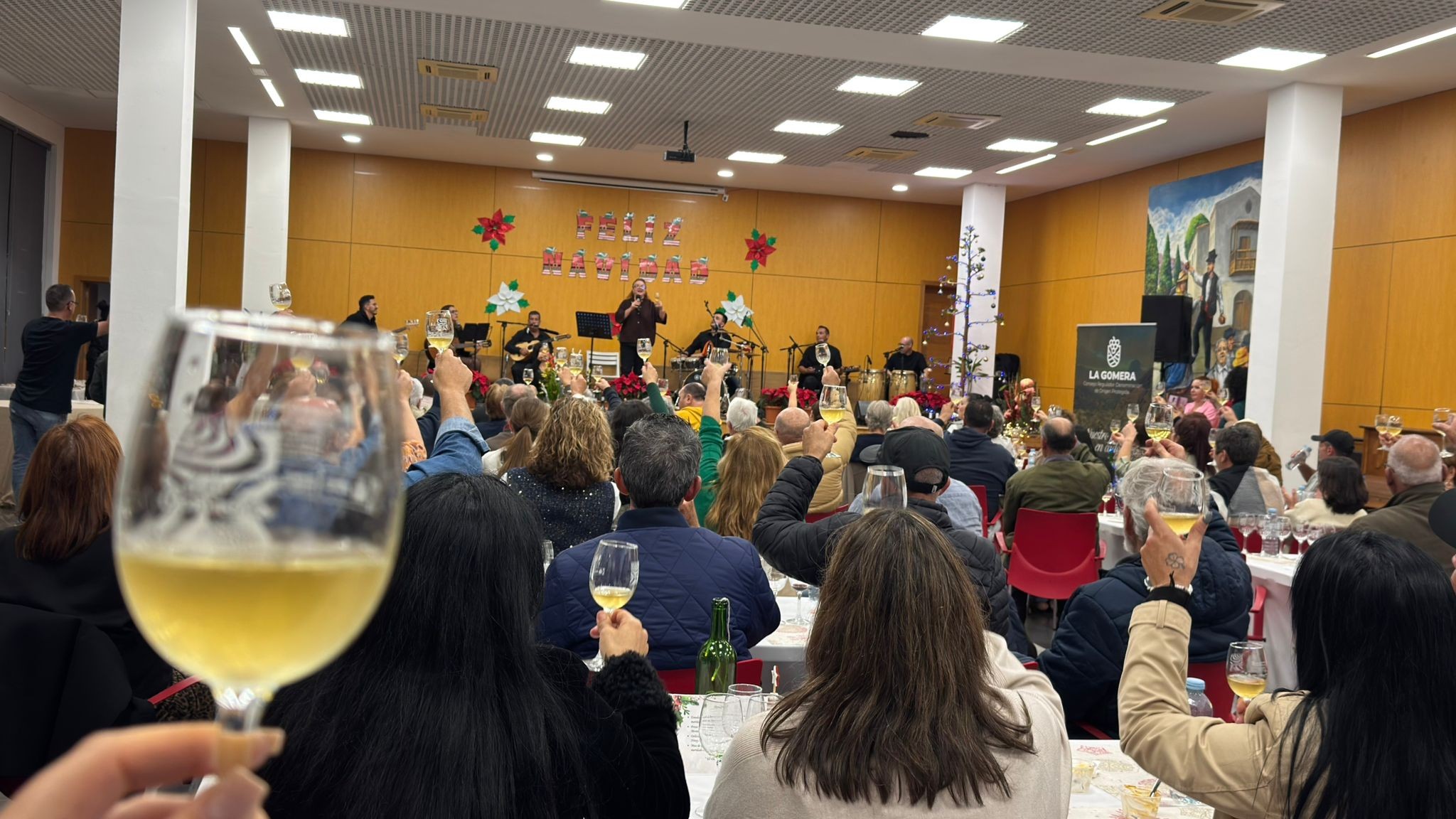 La actividad ‘Noches de vinos, tapas y música: Cantando pasiones’, que desde hace más de una decena de años viene celebrándose en el municipio de Alajeró, se ha convertido en una auténtica referencia de la gastronomía y los caldos de La Gomera y ha contado en esta edición de 2025, que se celebró este pasado martes, 16 de diciembre en el salón de actos del Ayuntamiento de la localidad con numerosos asistentes, tal y como ha venido sucediendo en ediciones anteriores.