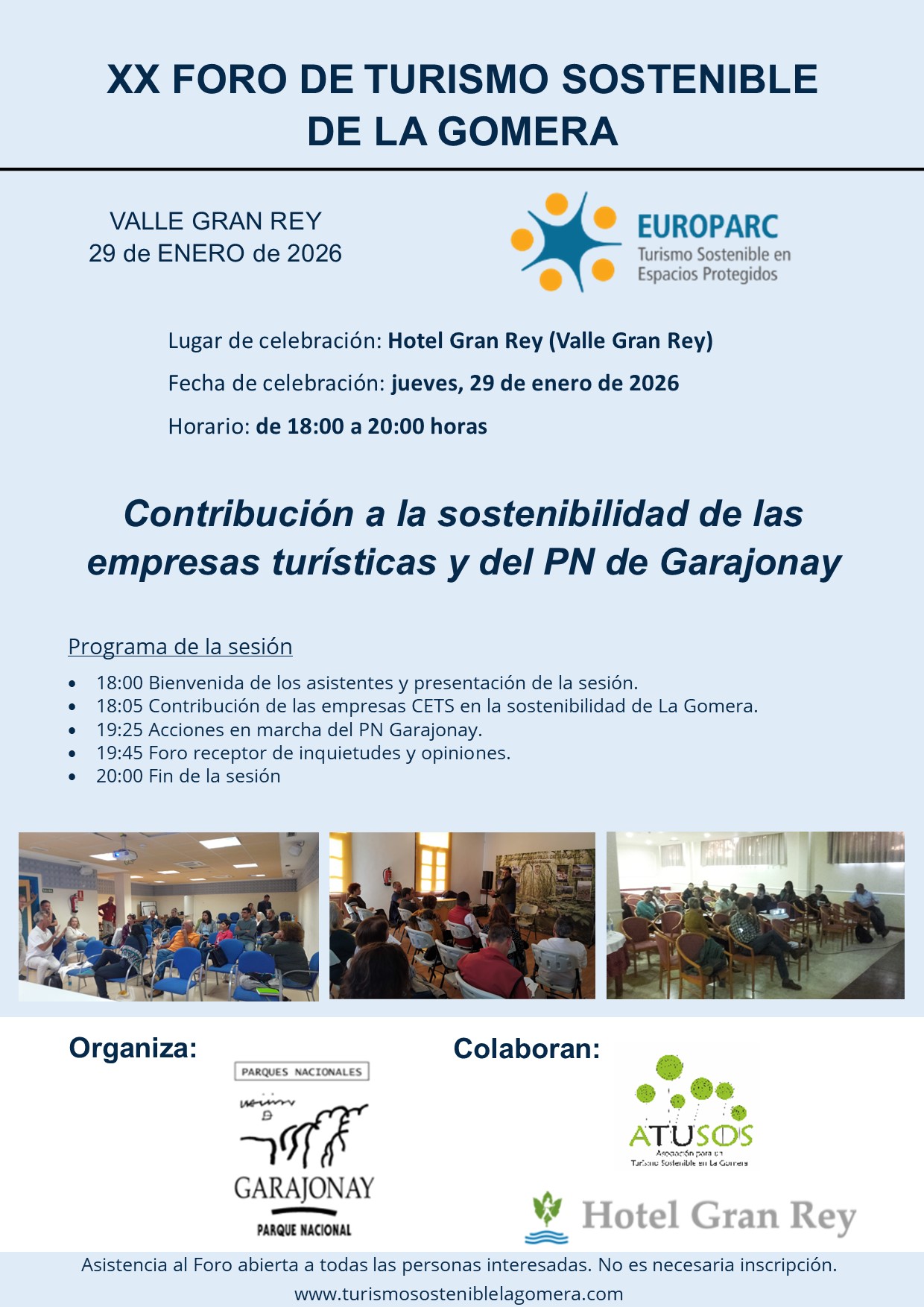 El evento está organizado por el Parque Nacional de Garajonay (oficina técnica de la CETS), con la colaboración de la Asociación por un Turismo Sostenible de La Gomera y del Hotel Gran Rey.
