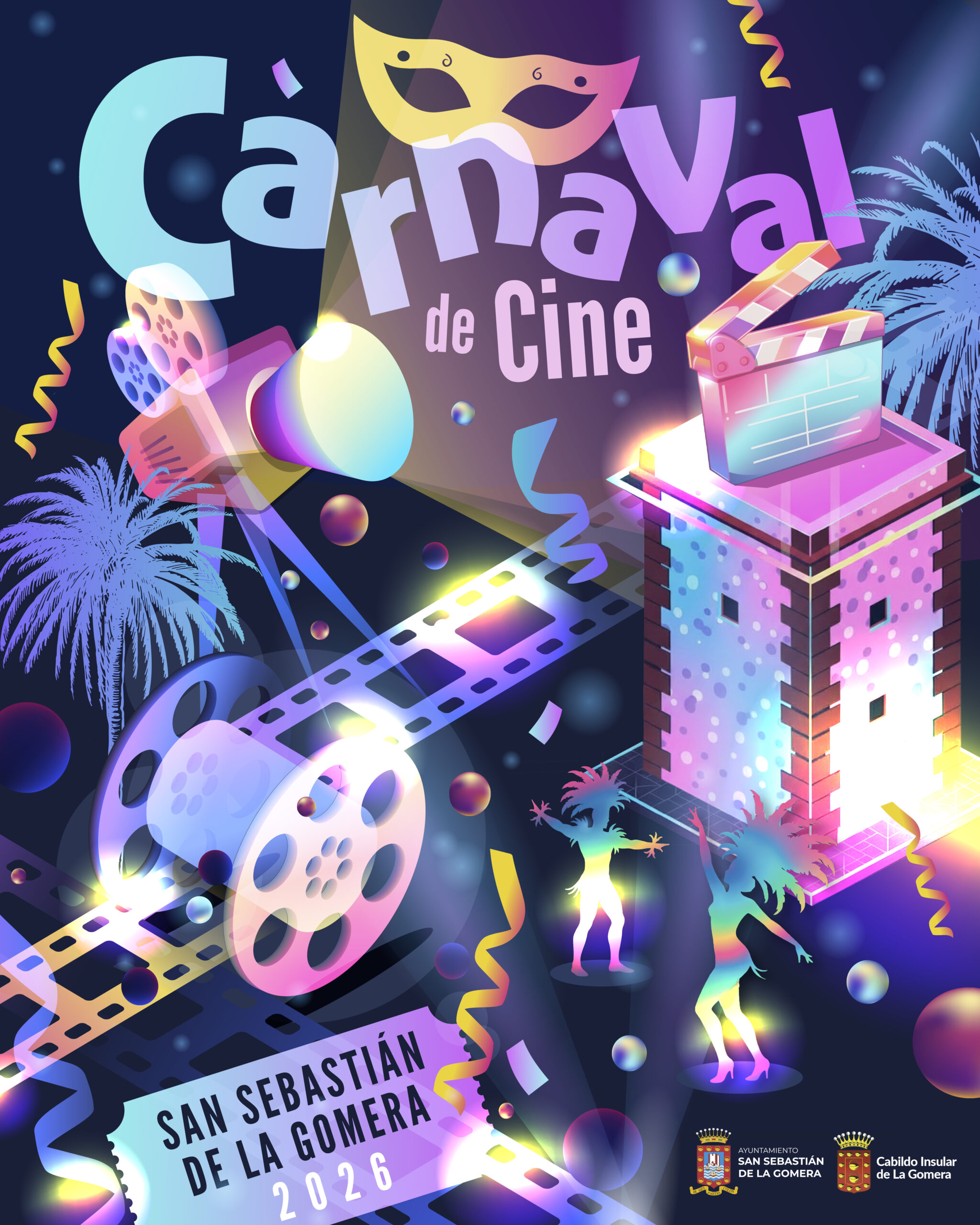 El Ayuntamiento de San Sebastián de La Gomera presenta el programa del Carnaval 2026 que, este año, tendrá como temática central «El Cine», una de las tres propuestas planteadas por el Grupo Motor del Carnaval junto a «Civilizaciones de la Antigüedad» y «Los Cuentos de Fantasía». El mundo del cine resultó la opción elegida la ciudadanía en una votación popular realizada de manera presencial y en redes sociales durante los pasados carnavales.