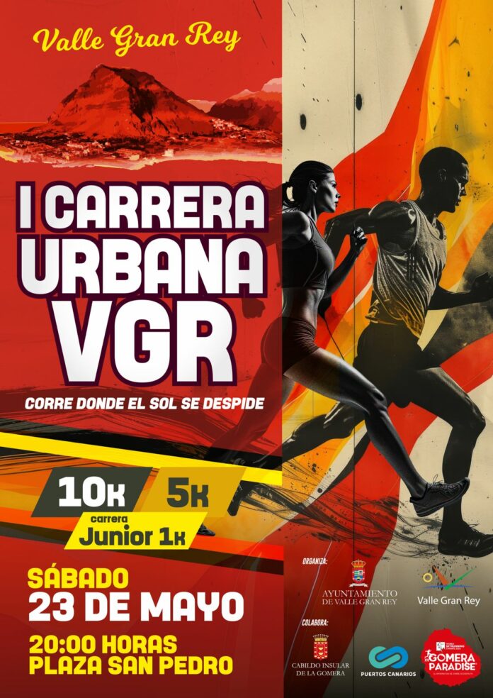 El Ayuntamiento de Valle Gran Rey presenta la I edición de la Carrera Urbana VGR, una nueva prueba deportiva que se celebrará el próximo sábado 23 de mayo a las 20:00 horas, y que tendrá como punto de salida la Plaza de San Pedro, recorriendo la Avenida Marítima y la zona del Puerto de Vueltas.