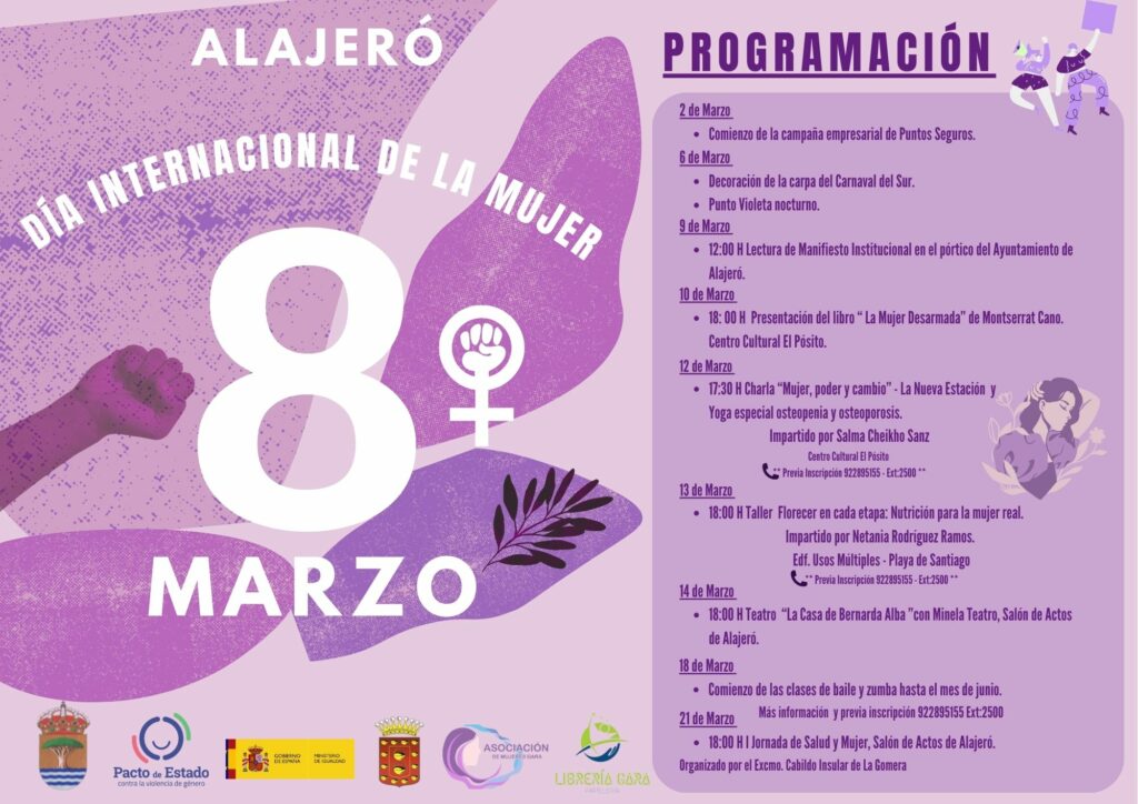 El municipio de Alajeró se prepara para la celebración del Día Internacional de la Mujer, que tendrá lugar el próximo 8 de marzo, aunque el programa dará comienzo este mismo lunes, 2 de marzo con el inicio de la Campaña Empresarial de Puntos Seguros, de la que se dará detalle ese mismo día en una rueda de prensa que será convocada al efecto.