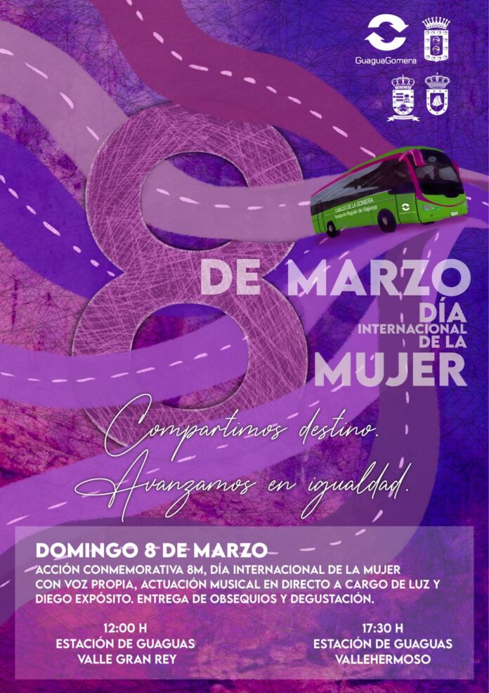 La jornada se desarrollará el domingo 8 de marzo en dos enclaves estratégicos de la isla. A las 12:00 h, la acción tendrá lugar en la Estación de Guaguas de Valle Gran Rey y, posteriormente, a las 17:30 h, se celebrará en la Estación de Guaguas de Vallehermoso. Estos espacios se convertirán en puntos de encuentro abiertos a personas usuarias del servicio y al público en general.