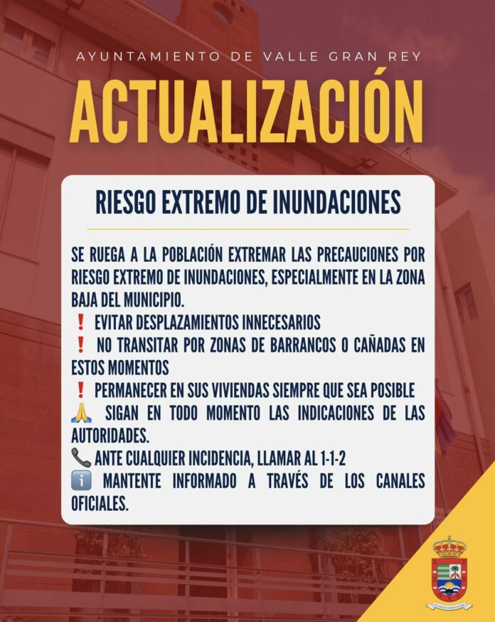 El Consistorio solicita evitar desplazamientos innecesarios, no transitar por zonas de barrancos o cañadas en estos momentos y permanecer en las viviendas siempre que sea posible.