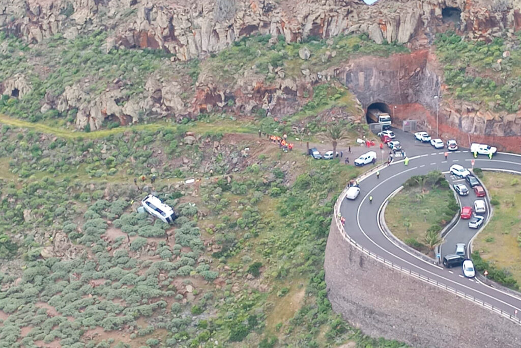 En el lugar del suceso trabajan diversos servicios de emergencia, un helicóptero medicalizado, tres ambulancias -dos de soporte vital avanzado-, equipo médico del centro de salud, enfermeras Gerencia de Servicios Sanitarios de La Gomera y dos ambulancias de TSNU.