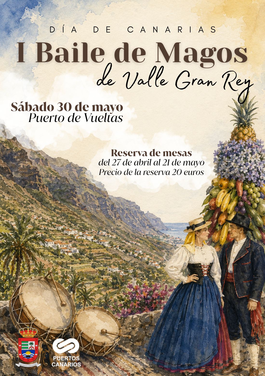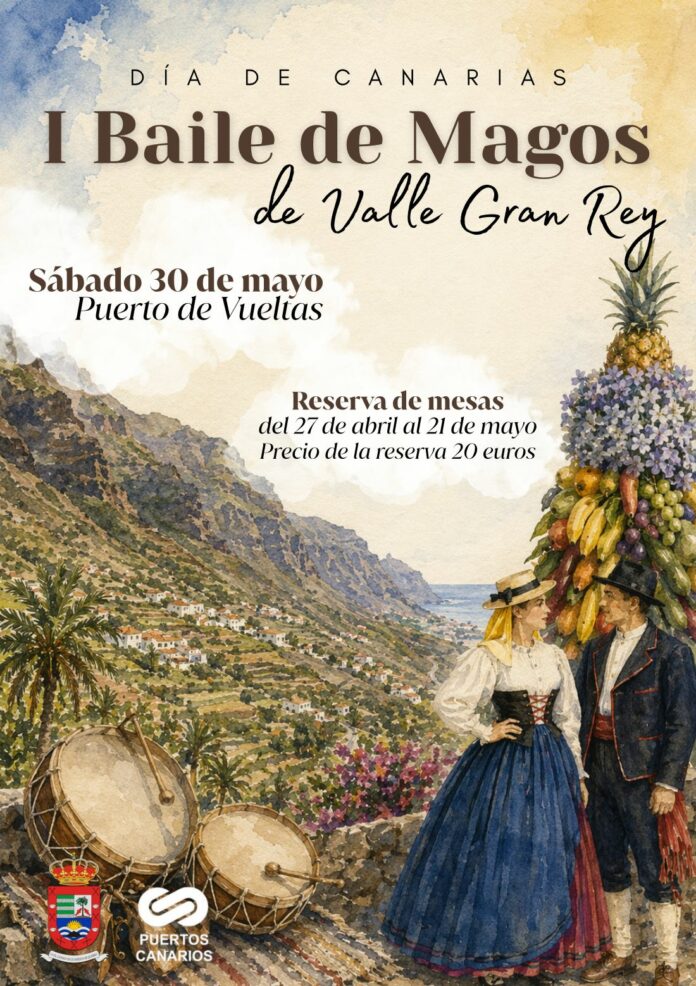 El Ayuntamiento de Valle Gran Rey, a través del área de Cultura, celebrará el próximo 30 de mayo el I Baile de Magos de Valle Gran Rey, coincidiendo con la conmemoración del Día de Canarias. El evento se desarrollará en el Puerto de Vueltas y nace con el objetivo de consolidarse como un espacio de encuentro para vecinos, vecinas y visitantes en torno a las tradiciones del archipiélago.