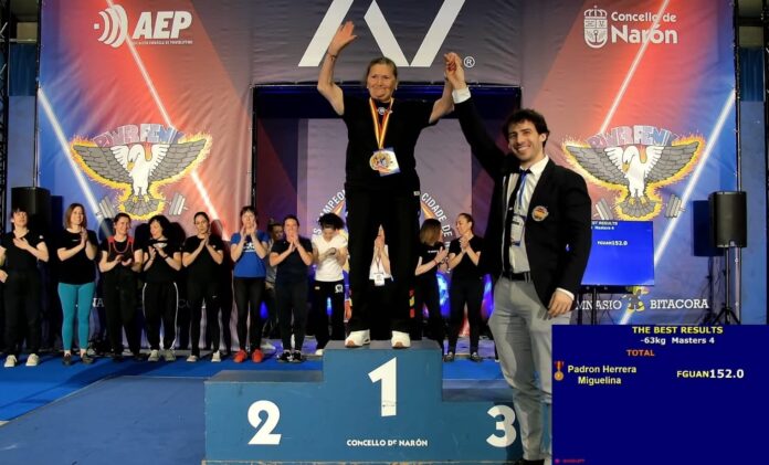 El pasado sábado 25 de abril, Miguelina Padrón Herrera se ha proclamado por cuarta vez consecutiva campeona de España de Powerlifting en la categoría Máster 4 (+70 años) de -63 kg.